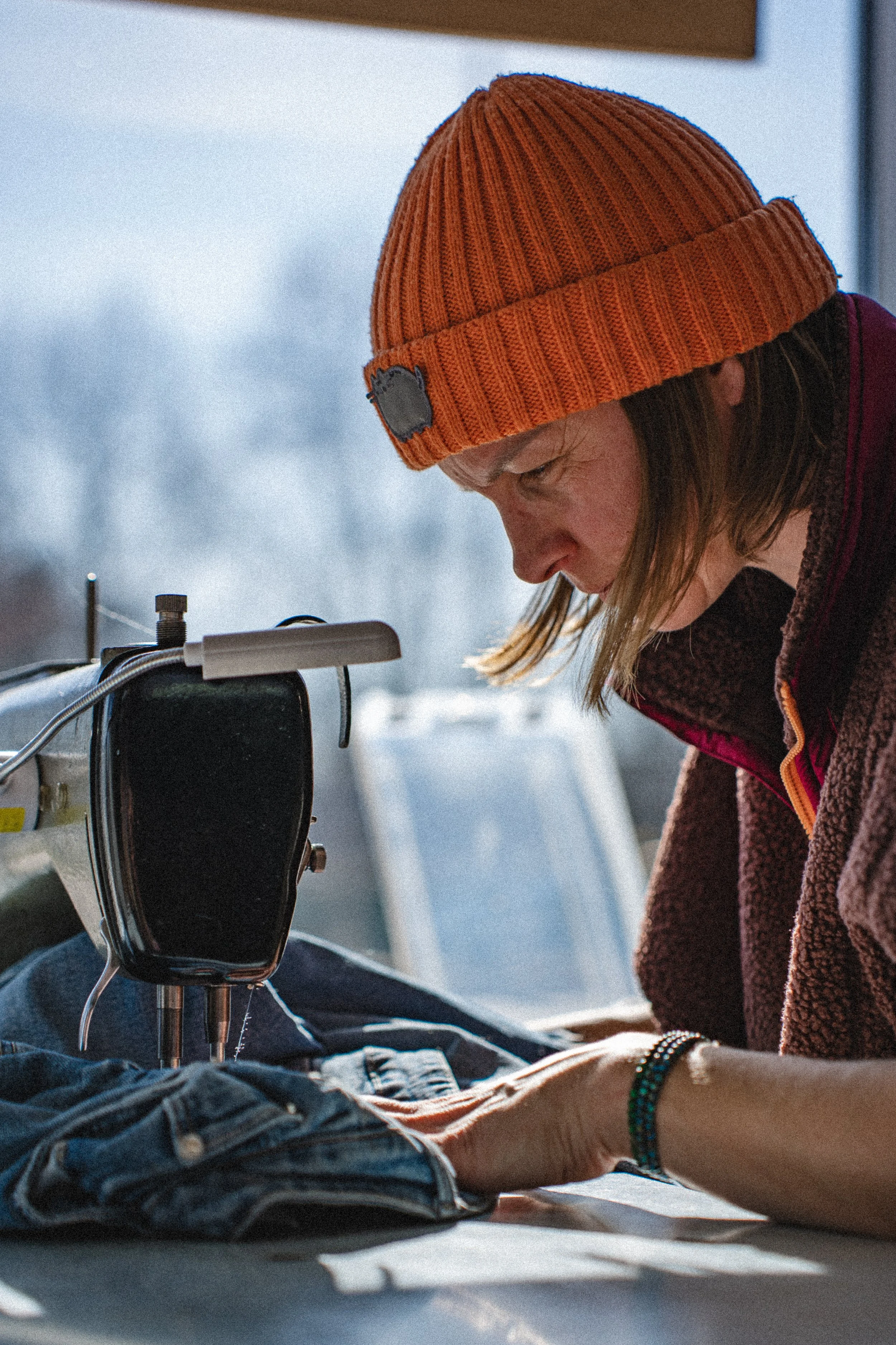 Monika współpracuje z marką Patagonia, wspierając inicjatywę Worn Wear, która zachęca do naprawiania i ponownego wykorzystywania ubrań zamiast ich wyrzucania. Jej praca to połączenie rzemiosła, ekologii i serca – wszystko po to, by tworzyć odpowiedzialnie i pięknie.